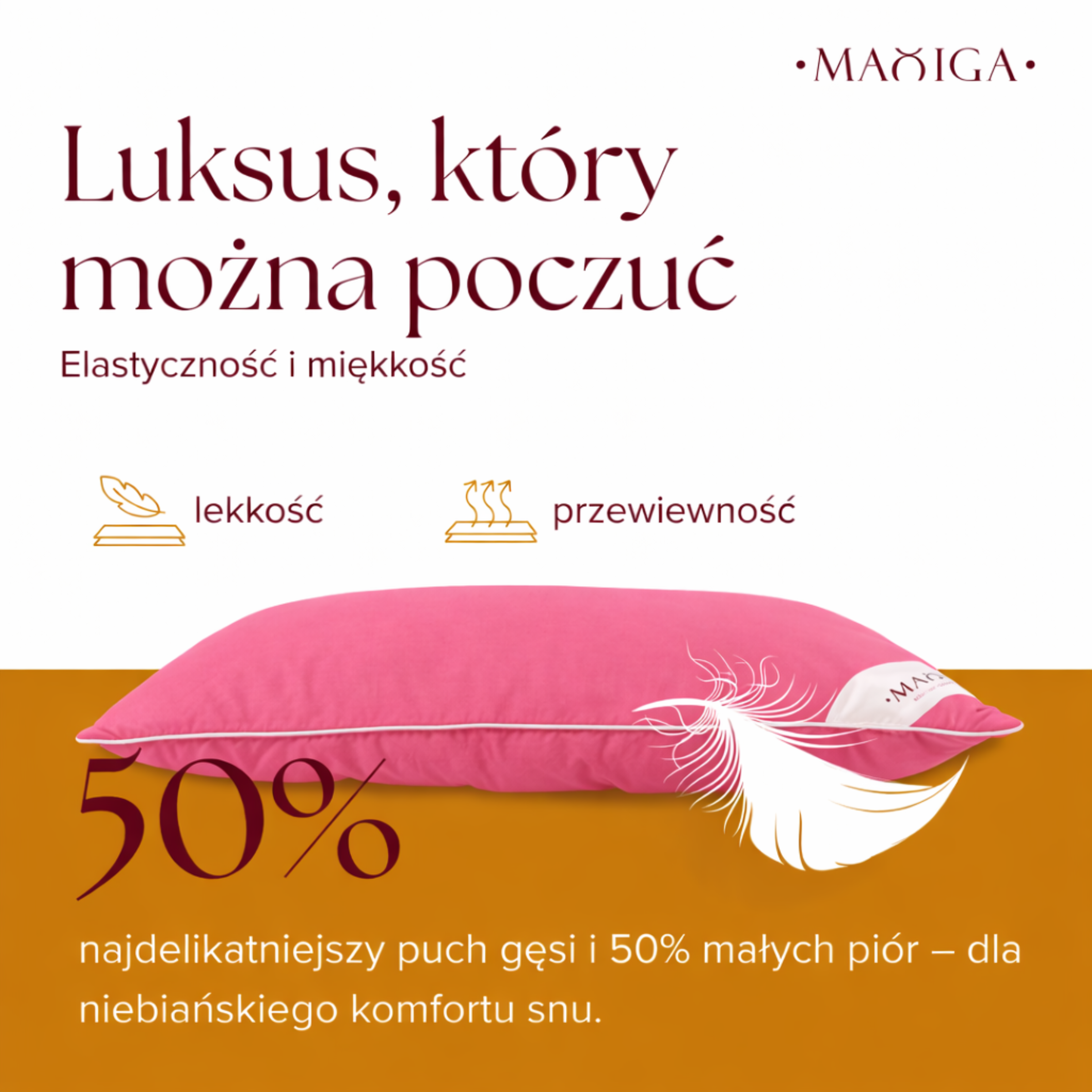 Ciesz się najwyższym komfortem snu – dzięki naszym wysokiej jakości poduszkom z gęsiego puchu. Nasza poduszka łączy w sobie luksusowe materiały, sprawdzoną jakość i zrównoważoną produkcję.
