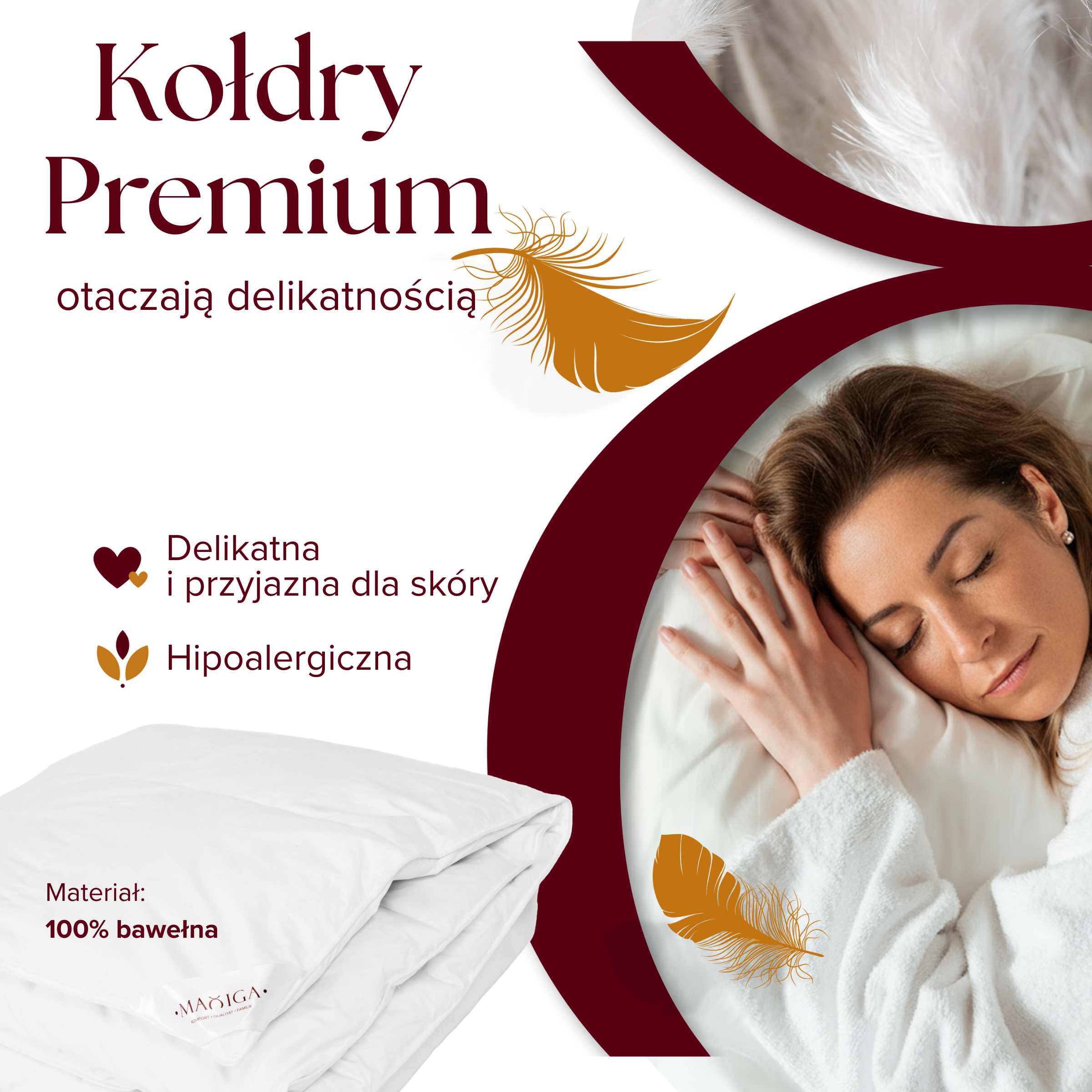 Doświadcz najwyższego komfortu snu – dzięki naszej kołdrze z gęsiego puchu klasy premium. Nasza kołdra łączy w sobie luksusowe materiały, sprawdzoną jakość i zrównoważoną produkcję. Dzięki wypełnieniu składającemu się w 80% z delikatnego puchu i w 20% z małych piór zapewnia przyjemne uczucie ciepła, które nie jest ani zbyt gorące, ani zbyt zimne – idealne na zimowe noce. Certyfikowana jakość i odpowiedzialność etyczna. Każdy puch pochodzi ze źródeł, które gwarantują, że nie jest on pozyskiwany od żywych zwierząt. Ponadto poszewka została przetestowana pod kątem obecności substancji szkodliwych zgodnie z normą OEKO-TEX STANDARD 100 – idealna również dla osób o wrażliwej skórze. Pielęgnacja i higiena można prać w pralce w temperaturze do 30°C i suszyć w suszarce – dzięki temu kołdra pozostaje higieniczna, świeża i trwała. Dla alergików i zdrowego klimatu w sypialni. Specjalnie czyszczone i przetwarzane w celu zminimalizowania alergii – idealne dla osób o wrażliwym śnie. Poszycie wykonane jest z delikatnej bawełnianej batysty, przetworzonej metodą pikowania kasetowego, dzięki czemu puch pozostaje równomiernie rozłożony. Dzięki starannemu wykonaniu nasze kołdry pozostają puszyste i zachowują swój kształt przez długi czas.