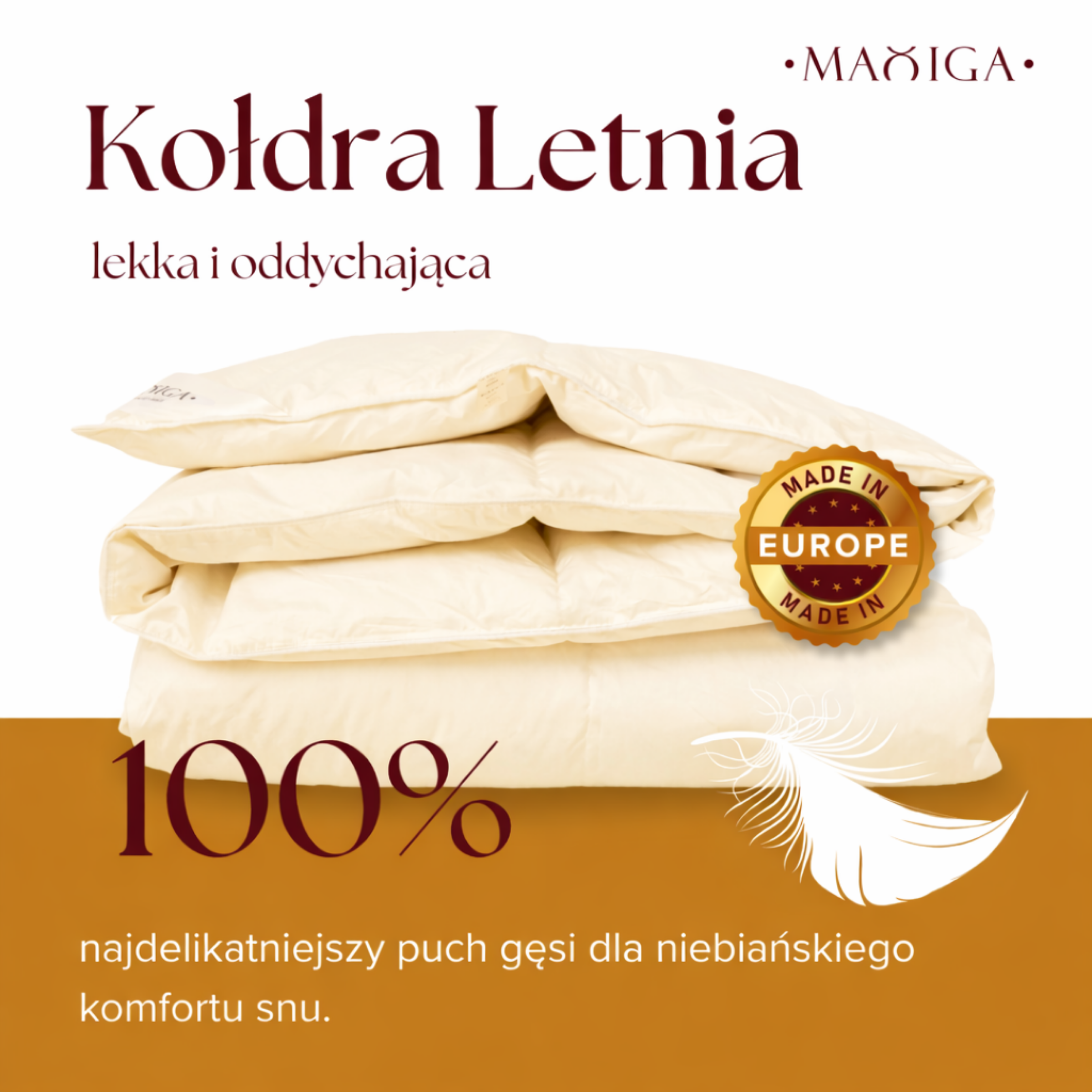 +48 515 604 585Kołdra Puchowa 200x200 LETNIA1,6KG PUCH 100% KREMOWA LEKKA