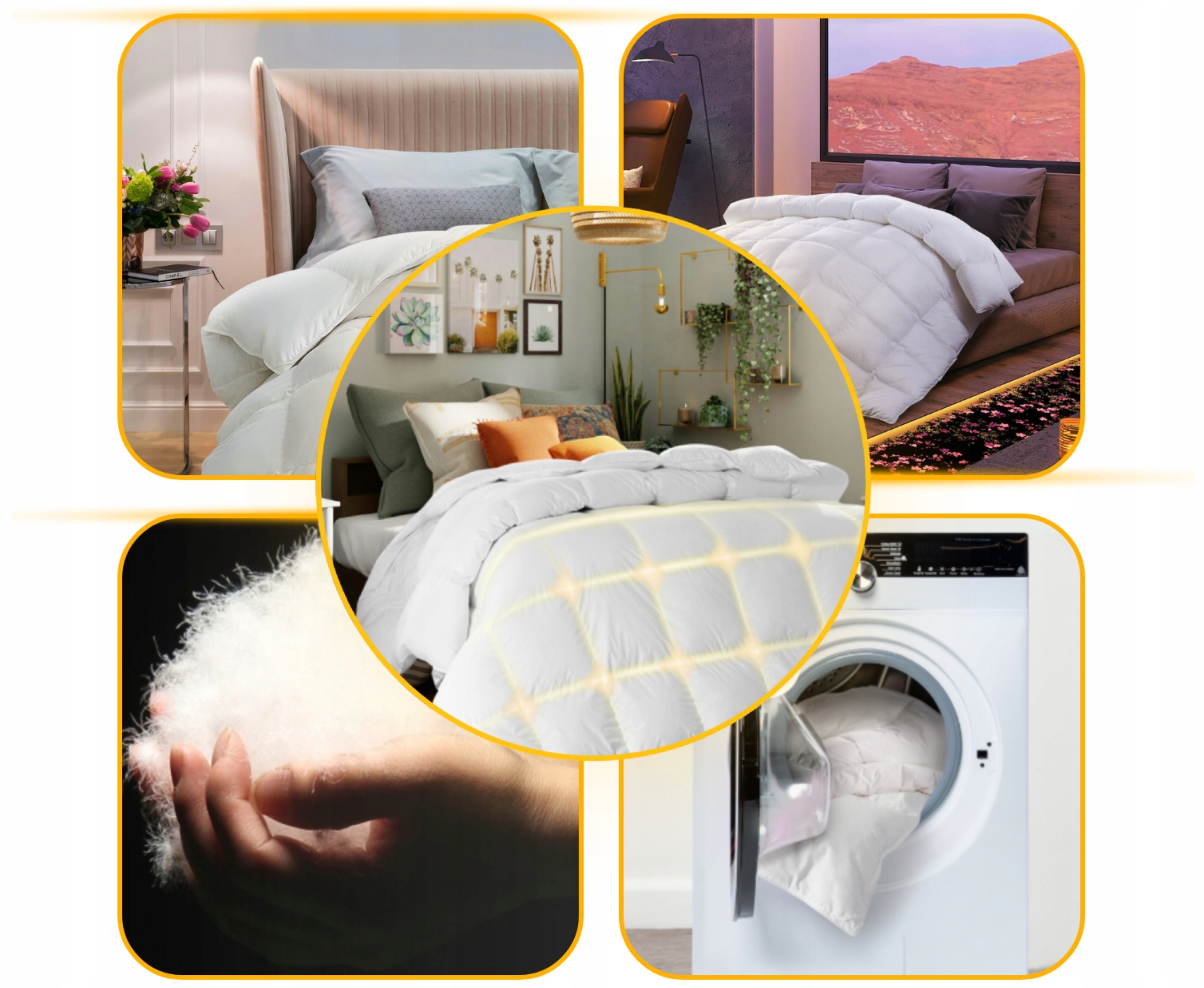 ⭐ Pranie i odpylanie: Puch przechodzi proces prania i odpylania, eliminując zanieczyszczenia i zapachy. Dzięki temu kołdry są hipoalergiczne i oferują świeże, komfortowe miejsce do snu.
